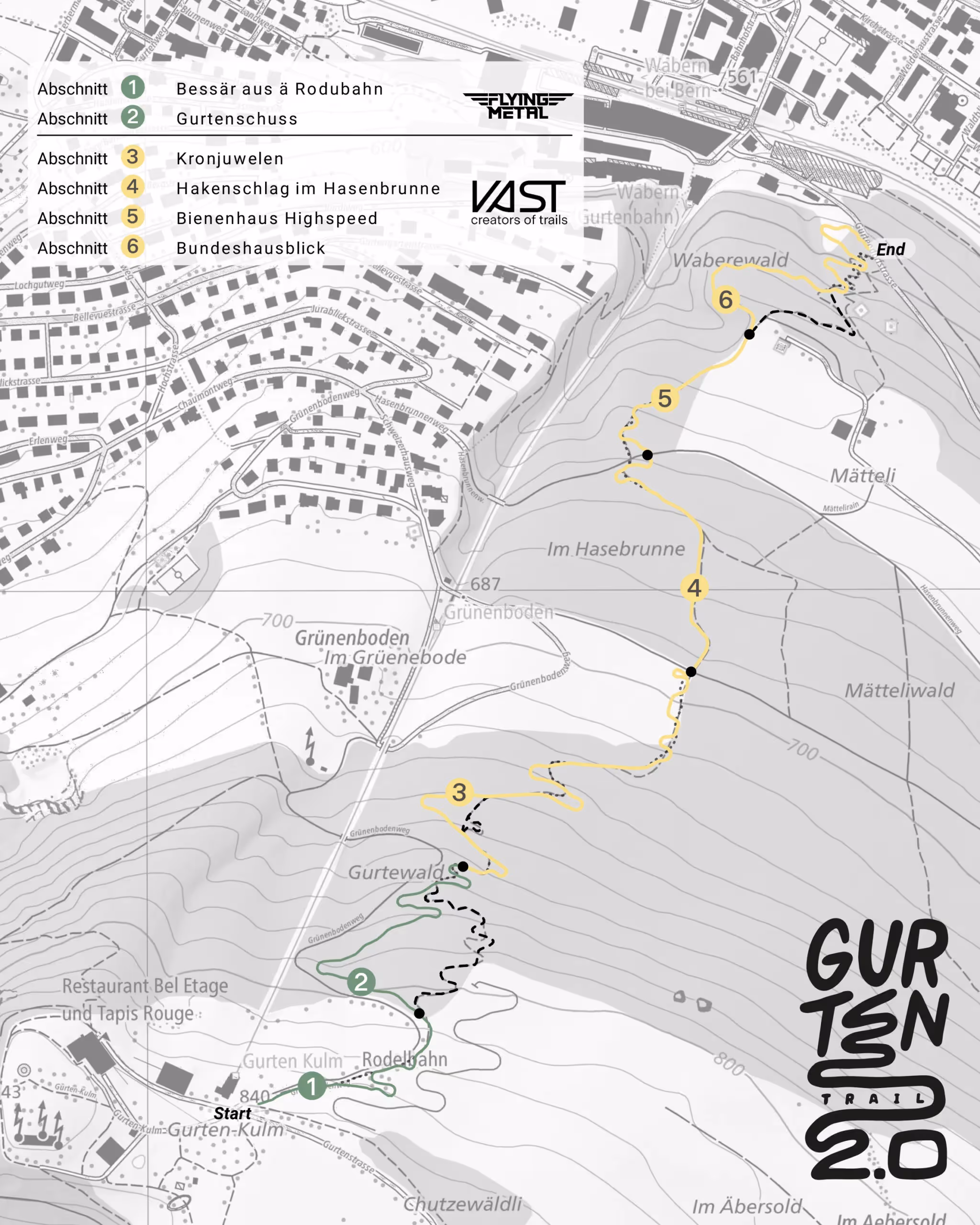 Die grosse Eröffnung des GurtenTrails 2.0 findet am 5. Juli 2025 statt. Direkt beim Trail-Ausgang richten wir auf dem obersten Parkdeck des Parkhauses bei der Talstation ein kleines Event Village mit Testbikes von trailnet-Partner Bike Shops, Bar und Verpflegungsmöglichkeiten und natürlich Musik ein. An diesem Abend blicken wir auch auf 20 Jahre trailnet.ch zurück und feiern das Jubiläum nach dem Bike Festival letztes Jahr in Biel/Bienne nun auch noch in Bern.
